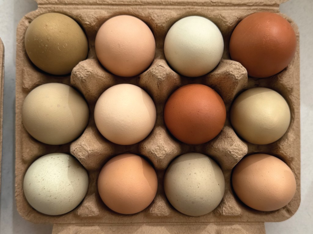 You can expect each carton to be generally equivalent to a dozen Large eggs, but you’ll be receiving a variety of sizes. Our sizes range from Medium to Jumbo+, but average Large, and we always try to pair medium eggs with extra large ones. Some cartons you receive will be just under 24 oz and some may be over.