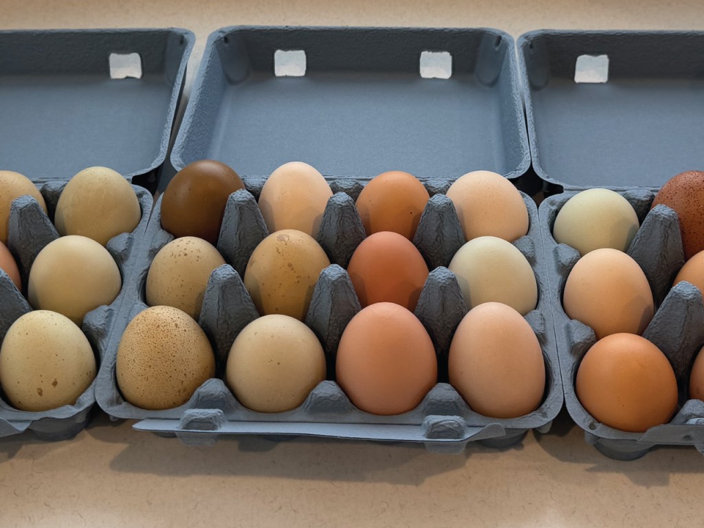 Not necessarily – some wash methods have actually been shown to preserve the bloom (see ATTRA below)! At industrial egg farms, they may have machines that are using synthetic solvents to strip stains off of white eggs, and then recoat the eggs with mineral oil – yikes! In contrast, we have a very gentle washing process, and if an egg doesn’t immediately come clean we discard it. Because many of our eggs have a heavy bloom, we can tell that the bloom is still intact after washing by the color to which the egg dries. Not every egg comes out of the nest perfectly clean, and, by washing our eggs, we maximize the number of “sellable” eggs, which is important for our thin margin. We always carefully monitor water temperature to ensure wash water does not penetrate the shell. If you want to learn more about egg handling, we recommend ATTRA’s publication on Small-Scale Egg Handling.