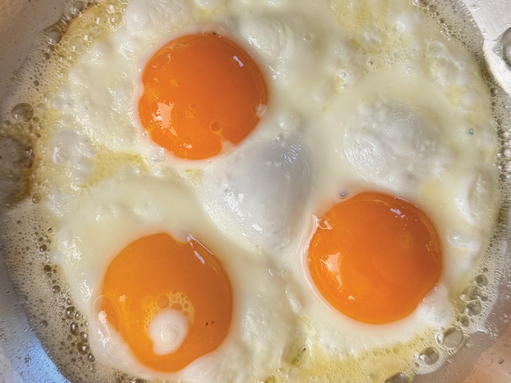 Almost always! You may notice a small white bullseye on the yolk, which indicates that there is DNA from the rooster in there. There is essentially no nutritional difference versus a non-fertilized egg, but it does mean that the hen had a rooster protecting her from aerial predators and pointing out the best foraging opportunities to her. A chick won’t start forming in a fertilized egg until a mama hen (or an incubator) provides consistent warmth and humidity (around 100 degrees and 50% humidity).