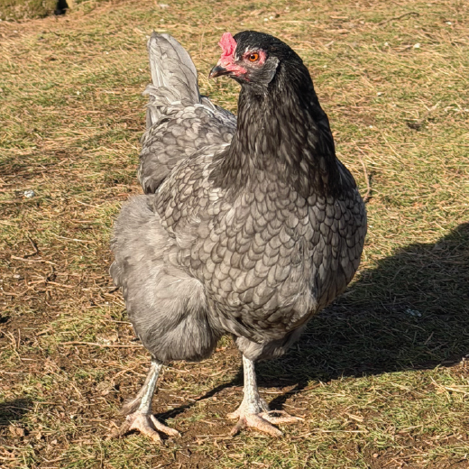 The Moss Line will come from our hens that are out of a French Black Copper Marans rooster over a blue Silverudd’s Blue hen. These hens are blue self-laced or black with faint copper or white leakage about the face. They have faintly feathered legs and are slightly larger than Silverudd’s Blue.