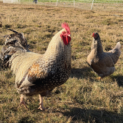 Under our 2026 Elk Creek Rock – Plymouth Line, we are pairing up our 2025 Elk Creek Rock Breeding Rooster with a group of Barred Plymouth Rock hens that we obtained from Hoover’s Hatchery. These ladies are delightful and follow us around for no reason at all. They are vigorous foragers and were mostly brooded outside without issue.