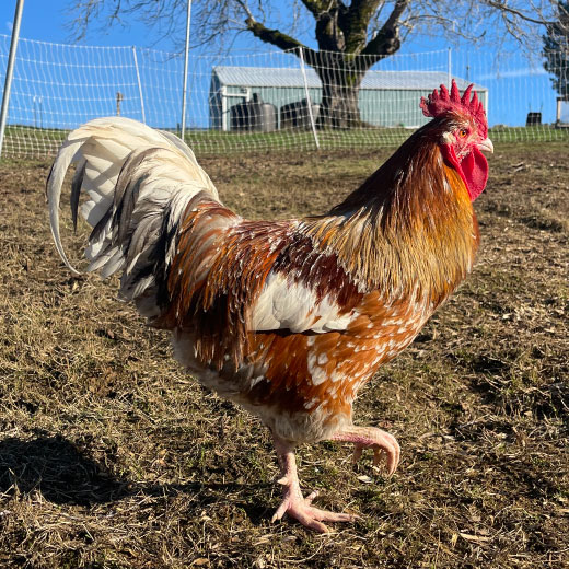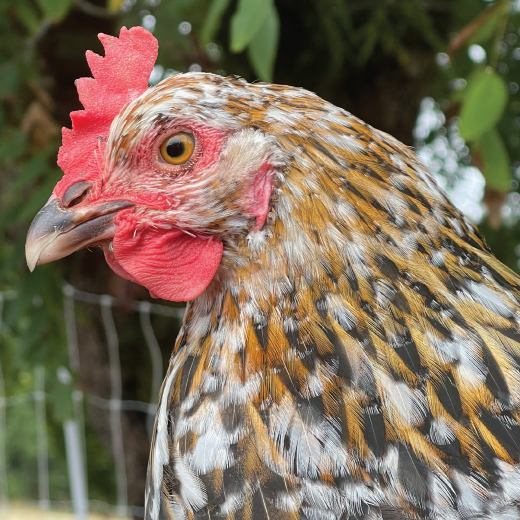 Commonly known in the United States as the Swedish Flower Hen, the Skånsk blommehöna (Scanian Flower Hen), is one of many Swedish landrace breeds believed to trace their origins back to the first domesticated chickens arriving in Sweden over 2000 years ago. As a landrace breed, their qualities developed through natural selection rather than human intervention. Consequently, Swedish Flower Hens are avid foragers and a good choice for the Pacific Northwest climate.